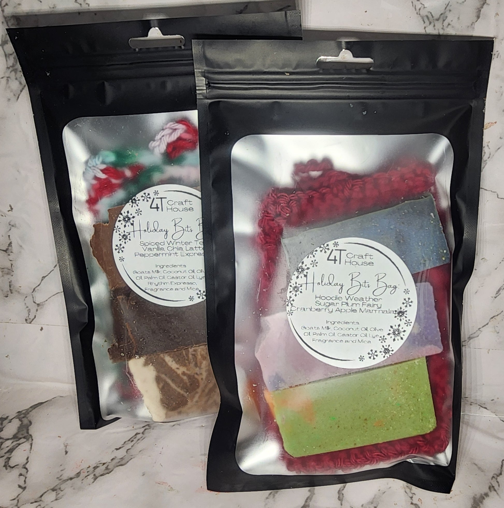 Introducing the perfect combo for your holiday bathing ritual - 3 goat's milk soap bits and a cotton soap saver bag!