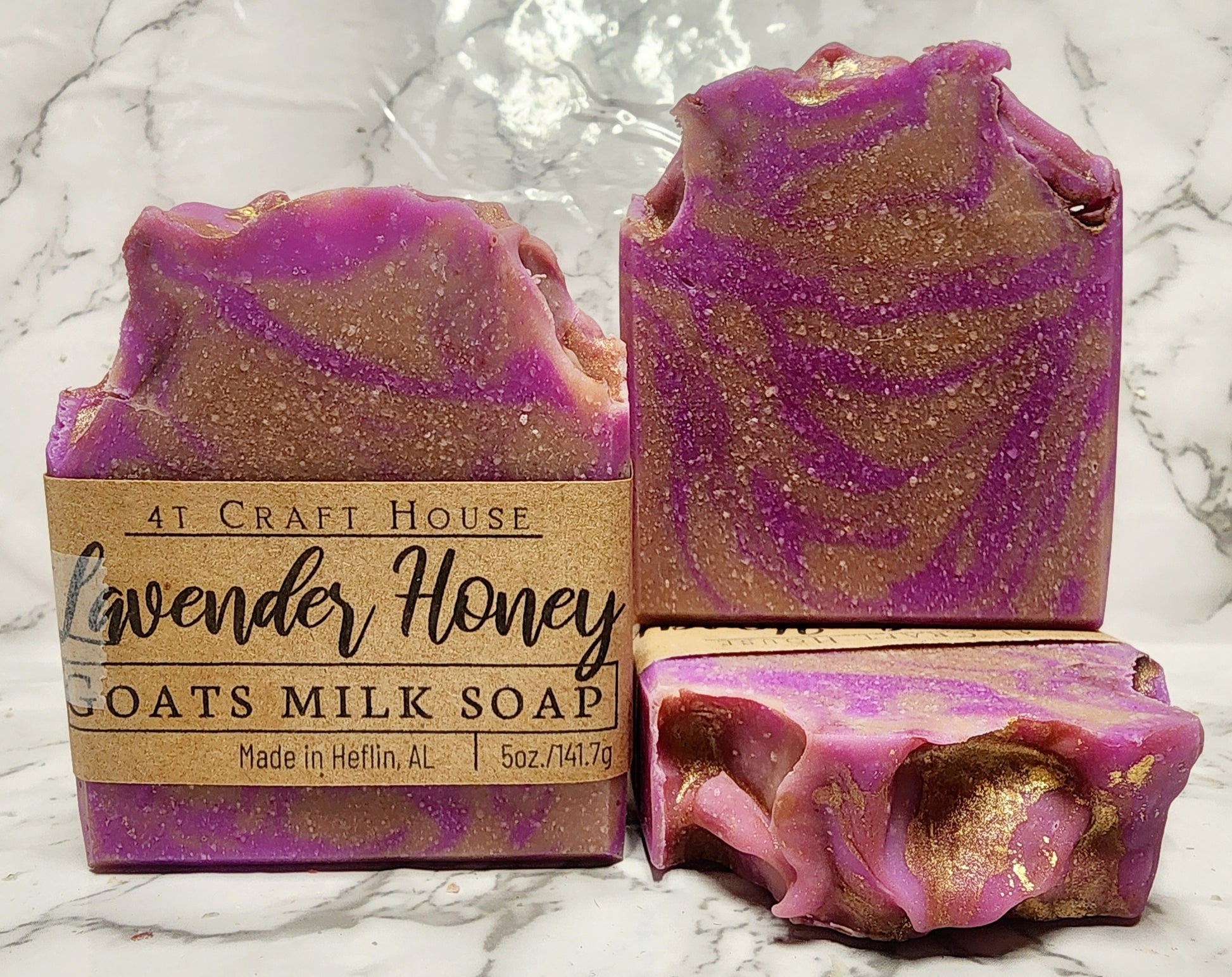 Every Soap is lovingly created in small 3-pound batches using the Cold Process method in Heflin, AL. These bars are created specially to be hard, cleansing, moisturizing and bubbly. After curing we package and label each bar with care. We take great pride in crafting our Artisan Soap bars.